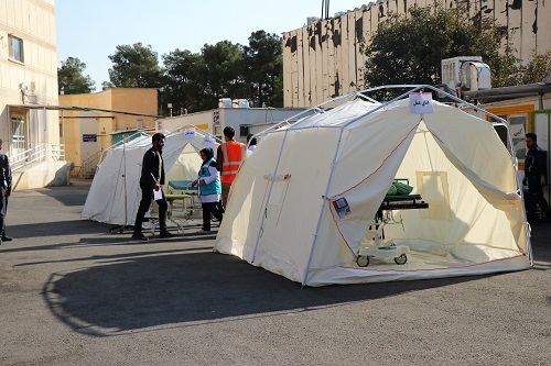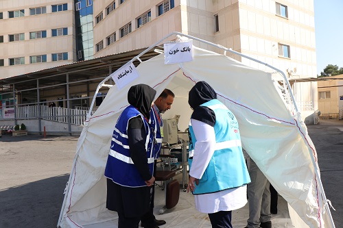 اجرای مانور مدیریت جامع بیماران در منطقه امن با برپایی بیمارستان صحرایی در بیمارستان آنکولوژی امیر