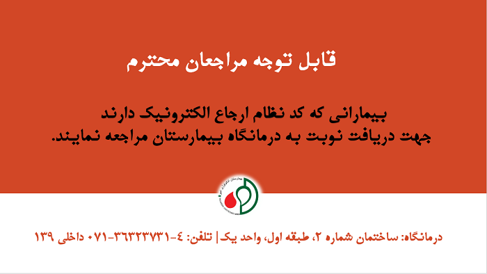 قابل توجه مراجعان درمانگاه: موضوع: کد نظام ارجاع الکترونیک گروه خبری : اطلاعیه کد خبری : 132922 کپی کلیدواژه